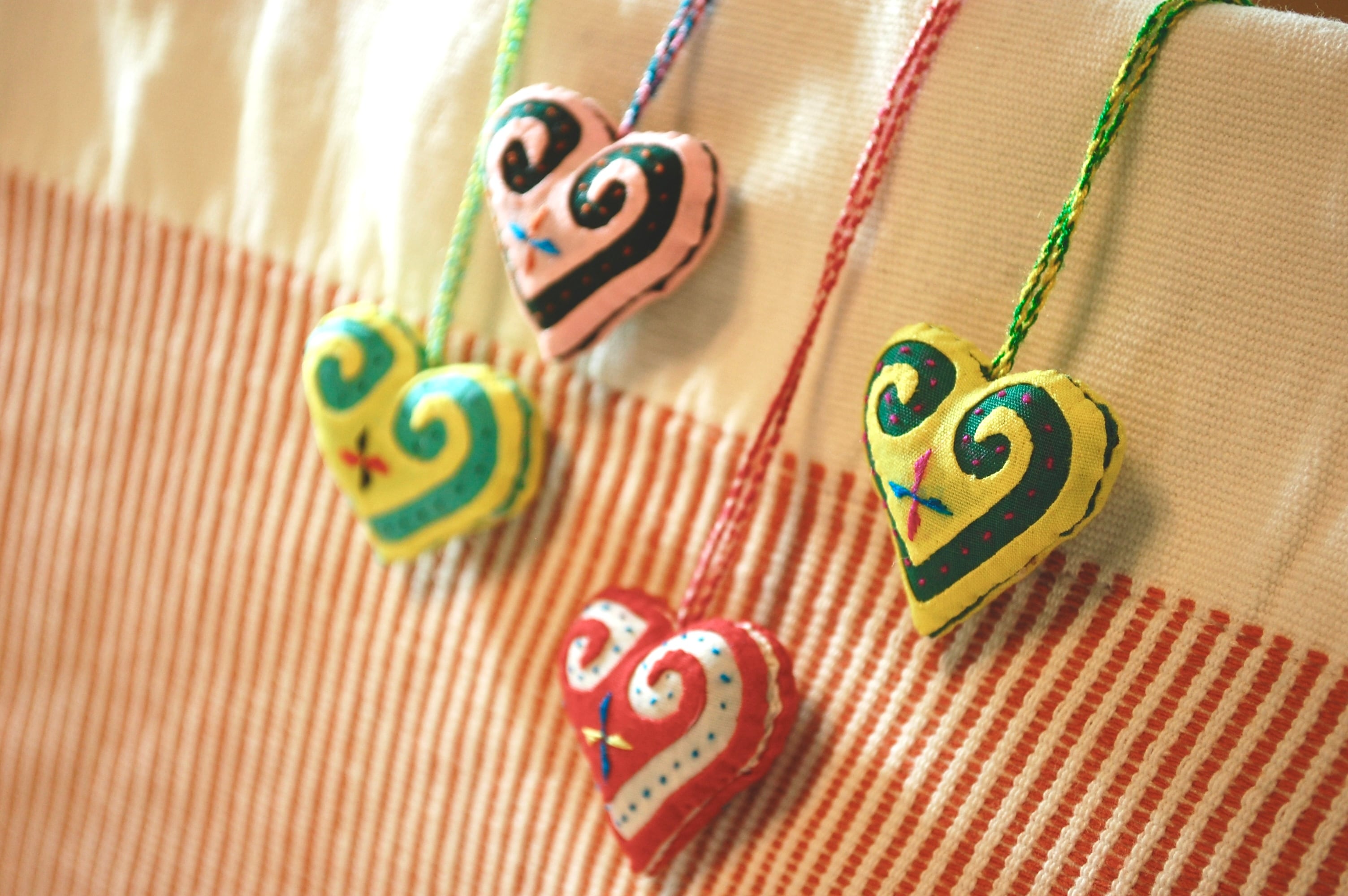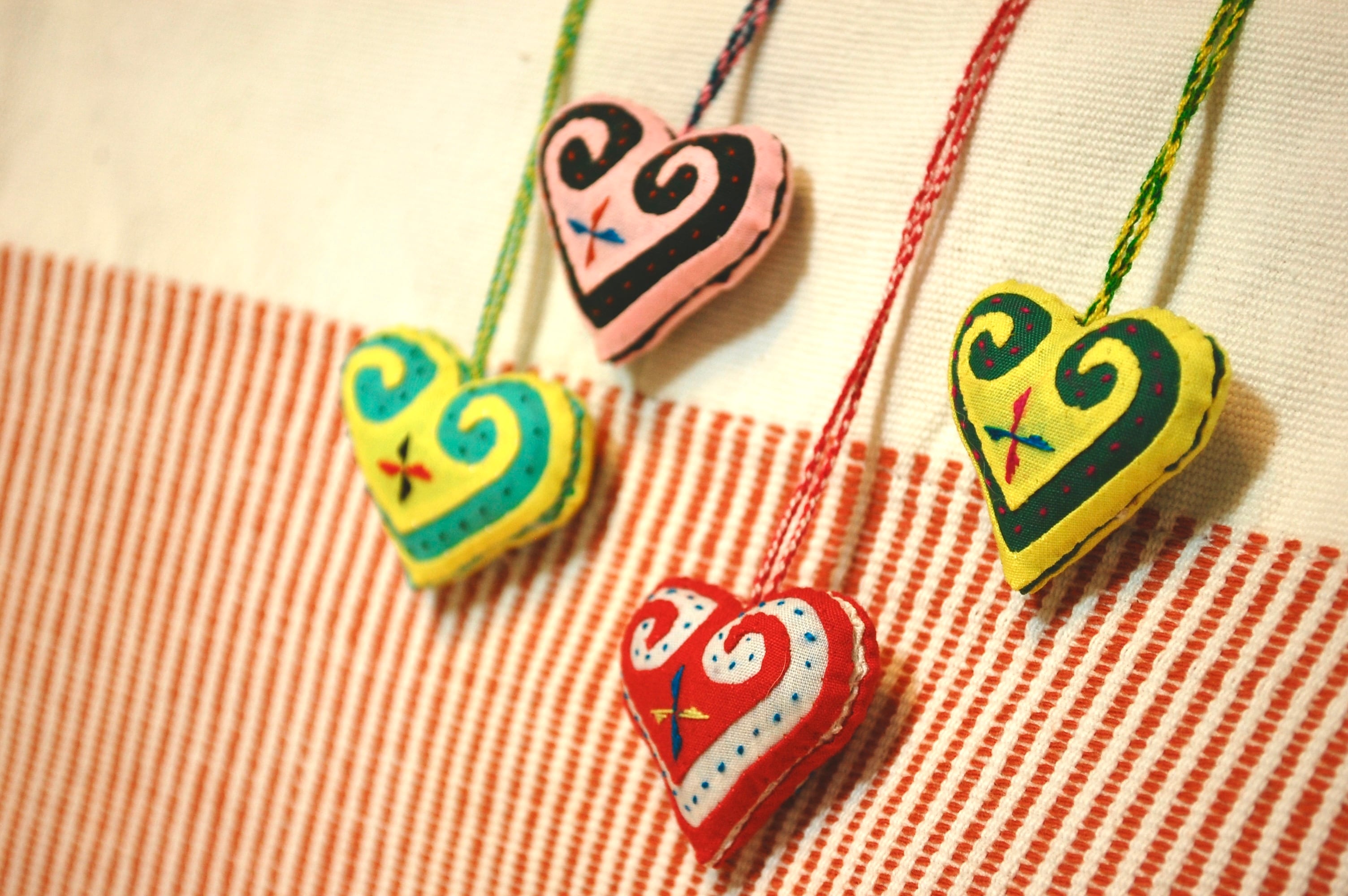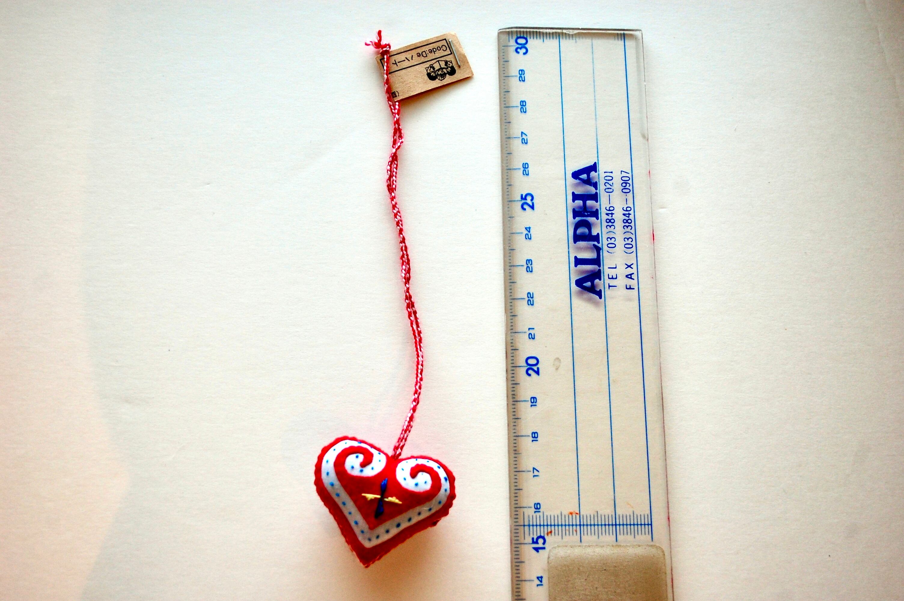 コロンとしたハート型ストラップです。長い紐が付いているため、つけ外しが簡単です。バッグだけでなく、ペンケースなどの小物との相性も良いです。柄は両面同じです。